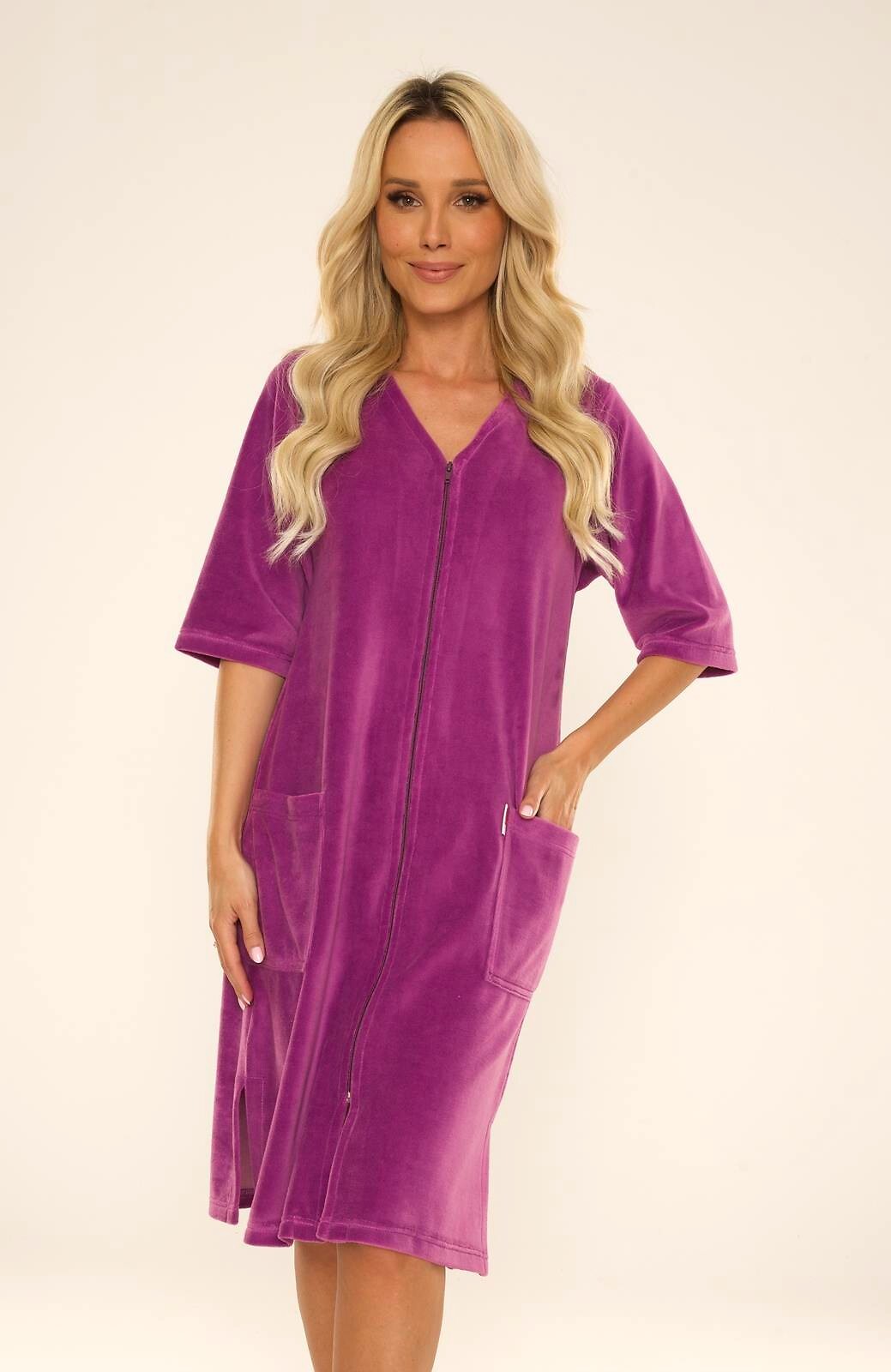 Moteriškas veliūrinis chalatas De Lafense 431 su užtrauktuku, M-4XL dydžiai.