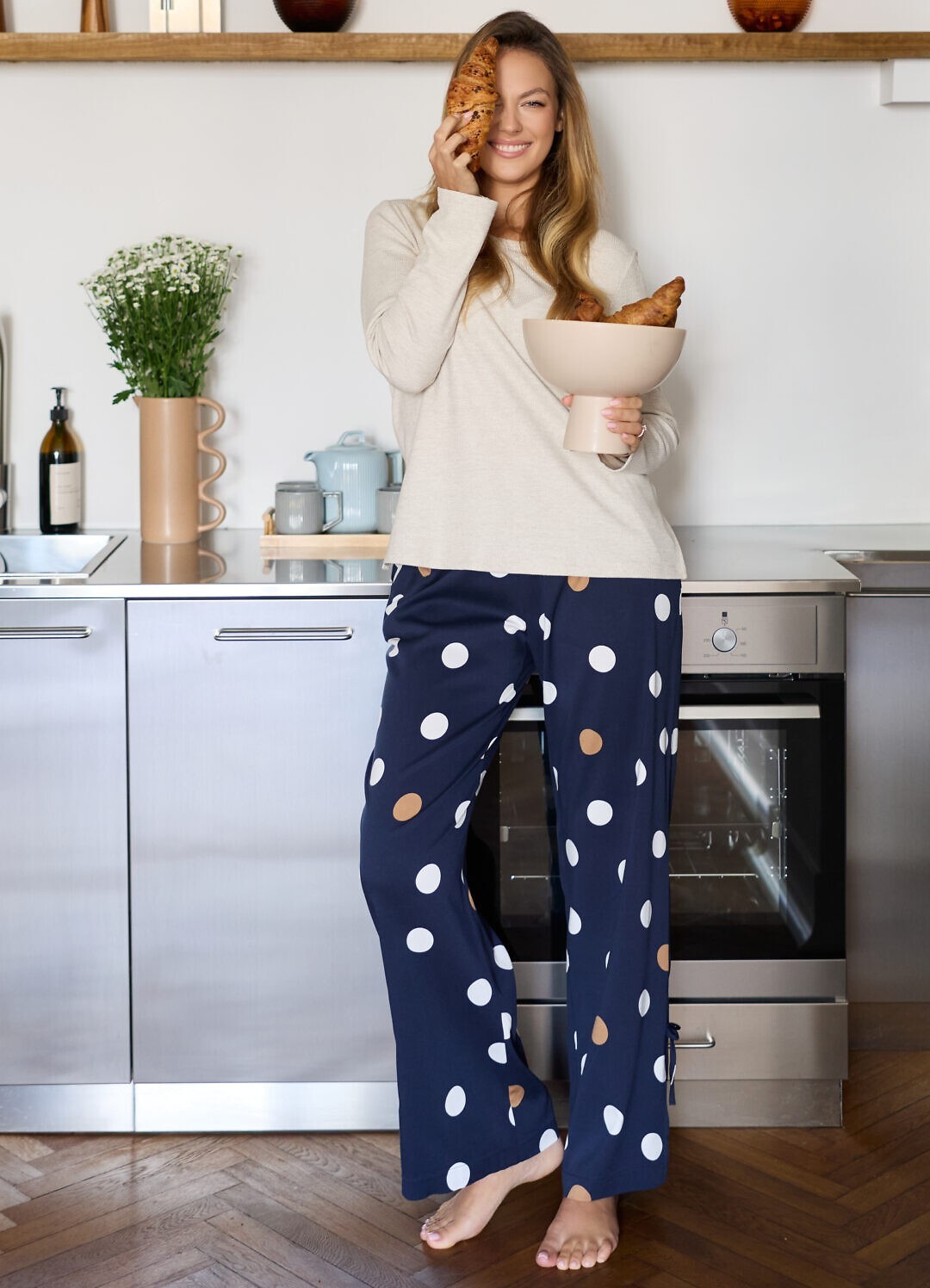 – do kompletu długie spodnie z tkaniny wiskozowej
