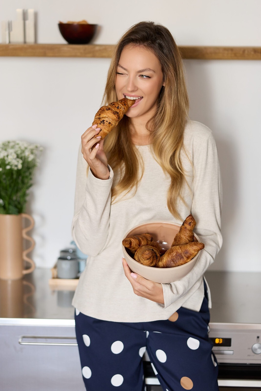 – ozdobione printem w grochy